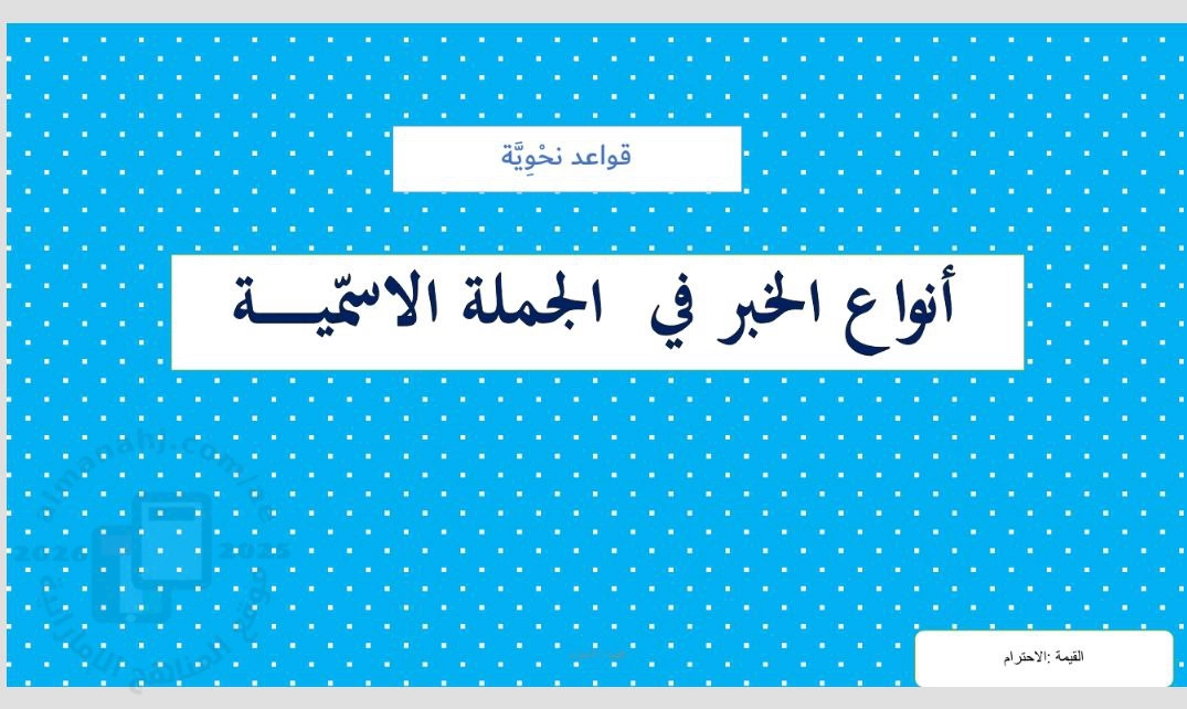 ملخص وأوراق عمل درس أنواع الخبر في الجملة الاسمية - إعداد: أسامة العبد | ||
