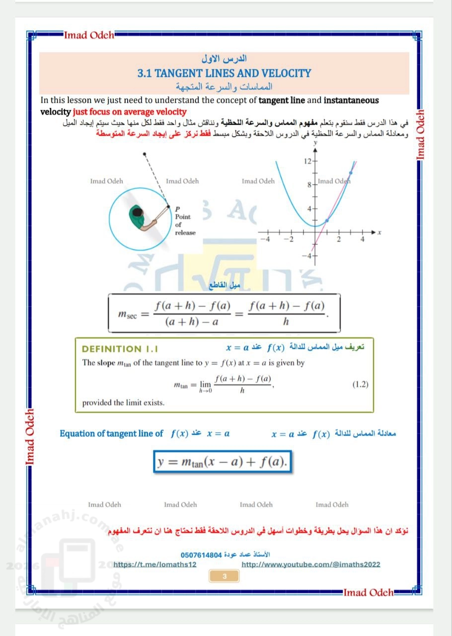 ملزمة أوراق عمل الوحدة الثالثة Differentiation الاشتقاق - إعداد: عماد عودة | ||