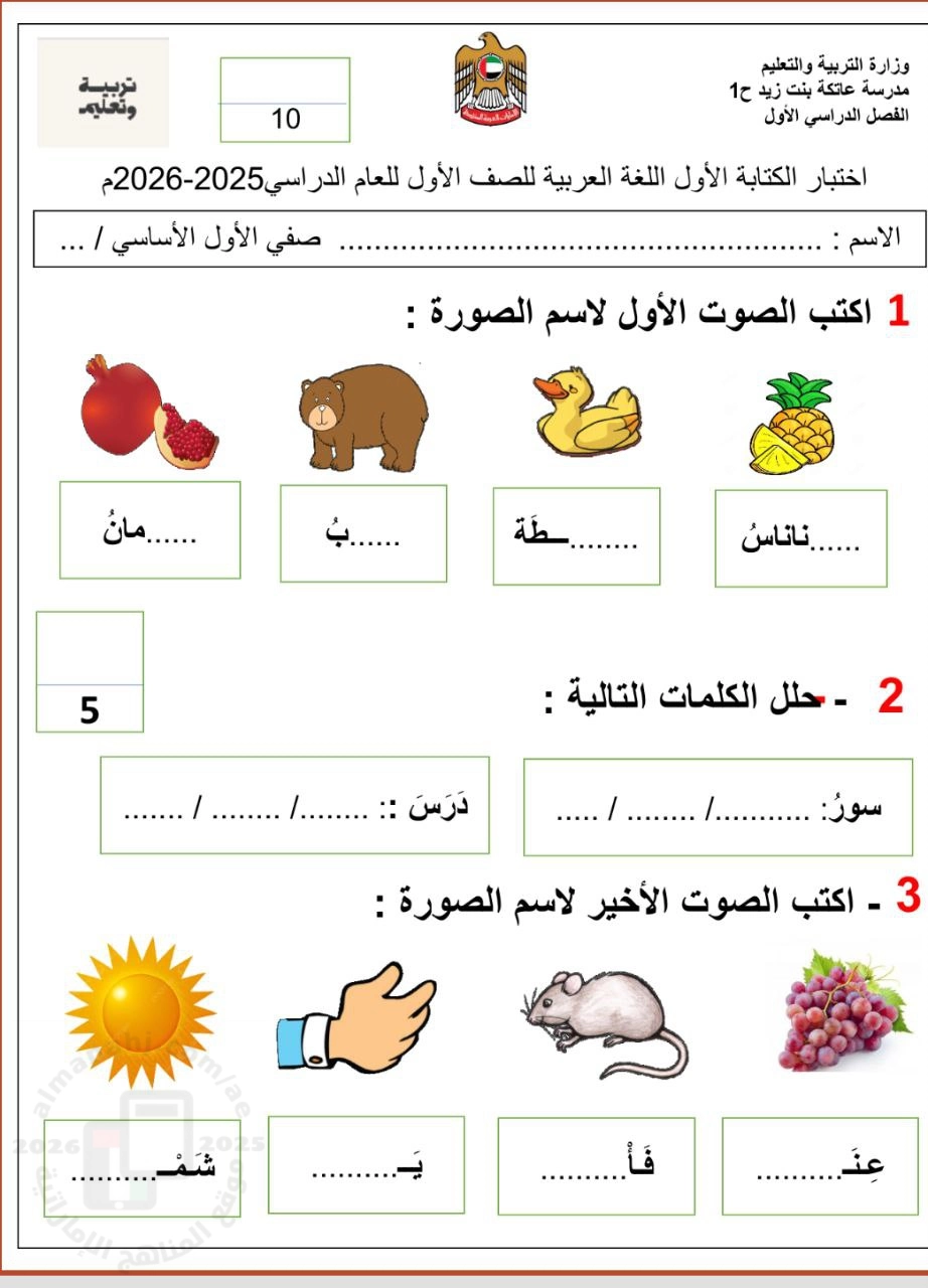 أنت هنا: موقع المناهج ⇦ المناهج الإماراتية ⇦ الصف الأول ⇦ لغة عربية ⇦ الفصل الأول ⇦ اختبارات |