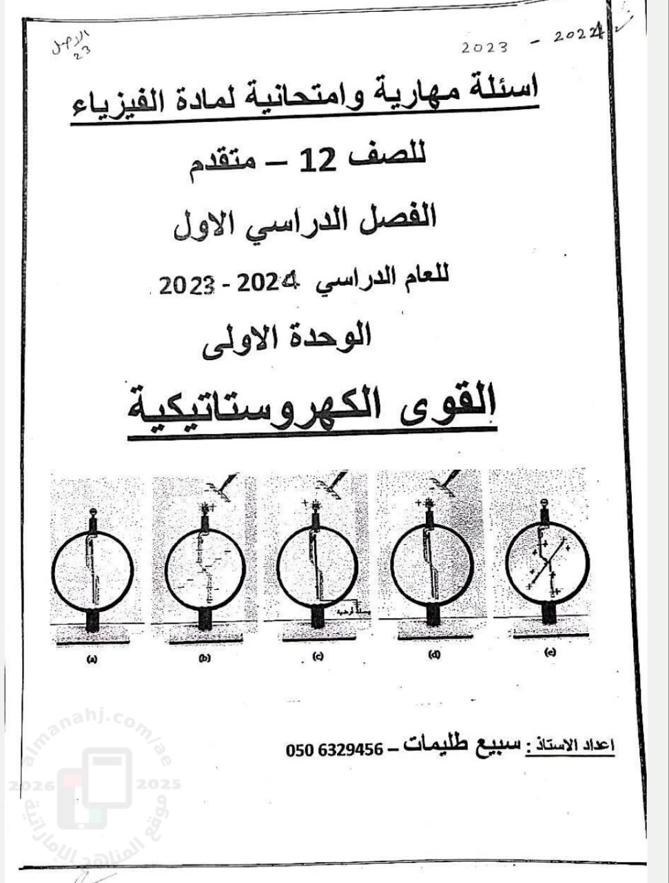 ملزمة الوحدة الأولى القوى الكهروستاتيكية أسئلة مهارية وامتحانية - إعداد: سبيع طليمات | ||