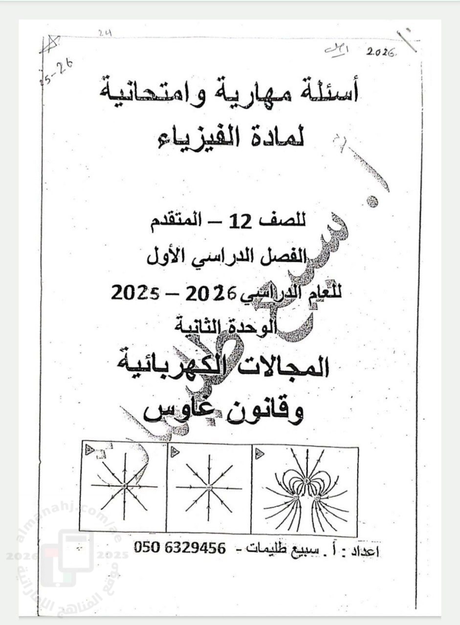 رابط تحميل وعرض ( ملزمة الوحدة الثانية المجالات الكهربائية وقانون غاوس أسئلة مهارية وامتحانية ) | |||
