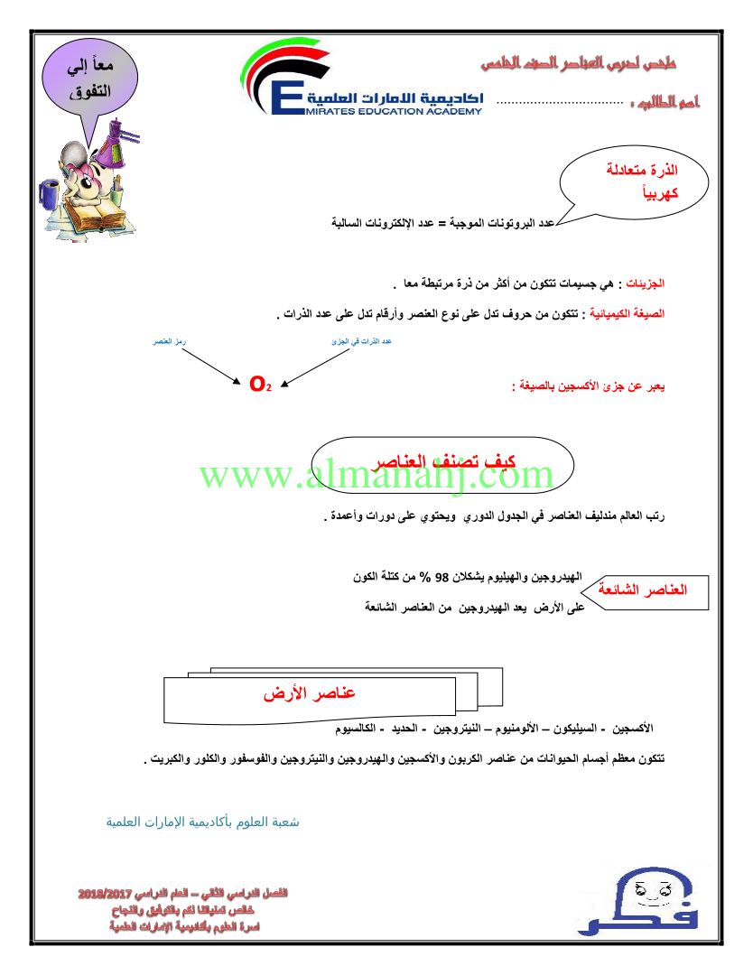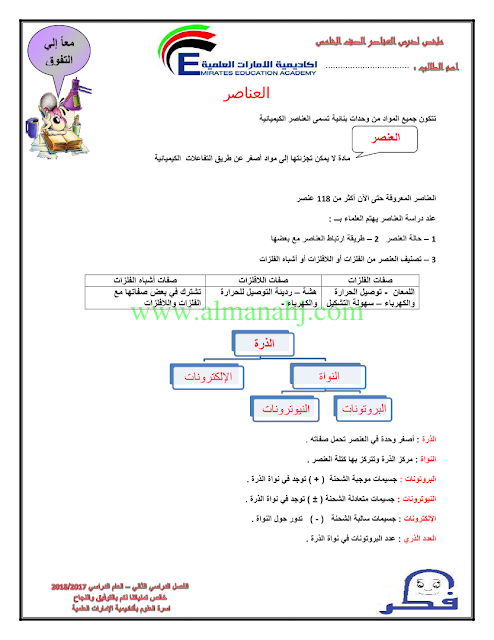 معلومات الملف: الصف الخامس, الفصل الثاني, علوم, 2017-2018, درس العناصر | |||