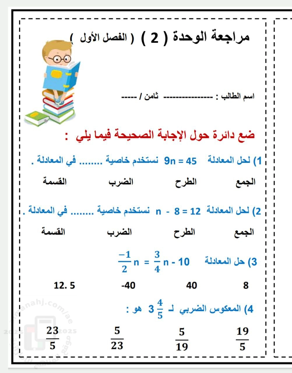 معلومات الملف: أوراق عمل الوحدة الثانية التعابير و المعادلات بدون الحل