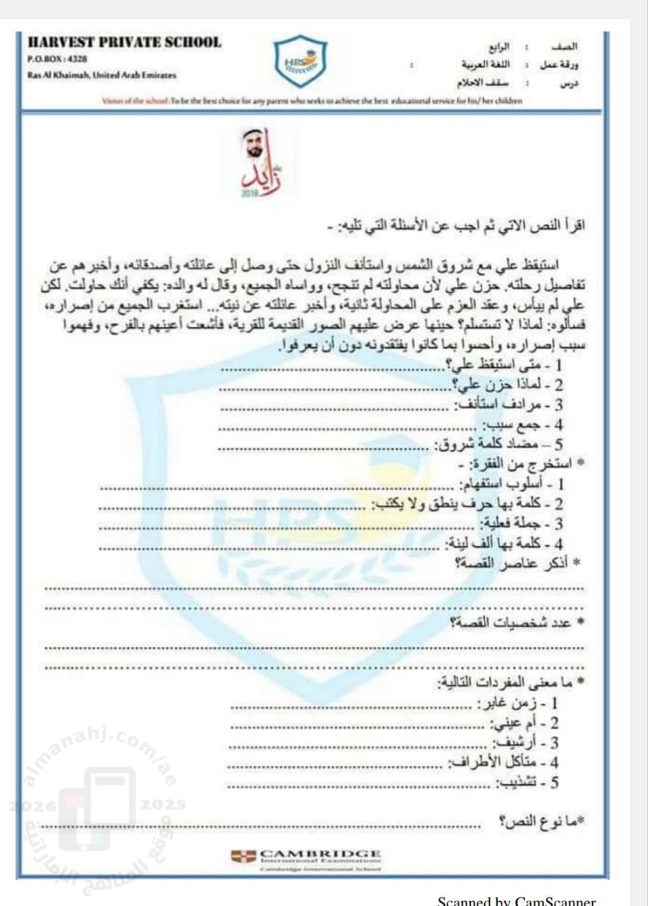أوراق عمل درس سقف الأحلام متبوعة بالإجابات - إعداد: مدرسة هارفست الخاصة | ||
