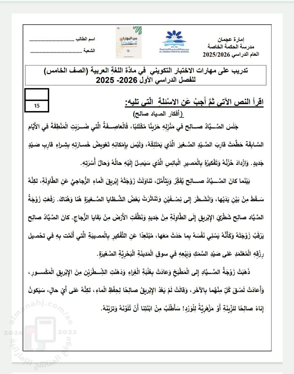 تدريب على مهارات الاختبار التكويني - إعداد: مدرسة الحكمة الخاصة | ||