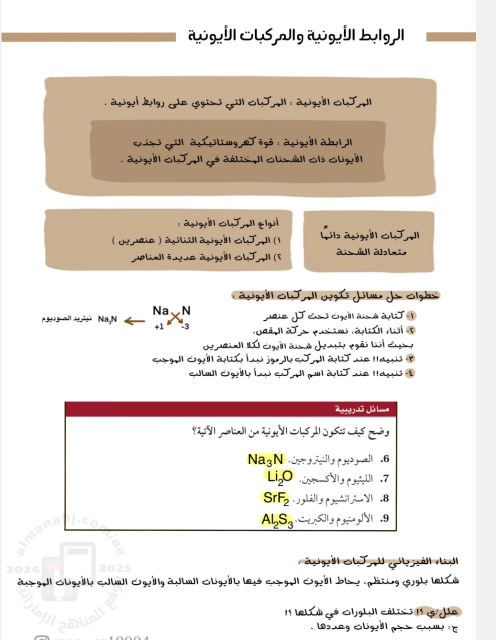 تم إيجاد الملف: ملخص درس الروابط الأيونية والمركبات الأيونية