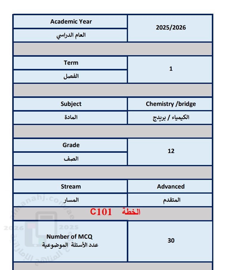 الهيكل الوزاري الجديد الخطة C-101 منهج بريدج 2025 | ||