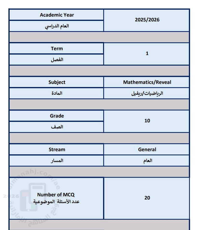 3. الصف العاشر العام, رياضيات, الهيكل الوزاري الجديد منهج ريفيل 2025