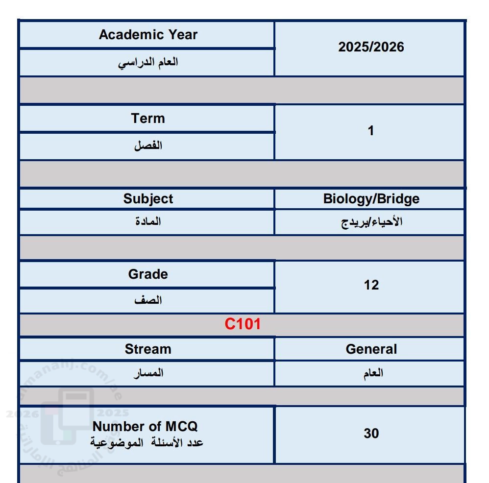 الهيكل الوزاري الجديد المسار C-101 منهج بريدج 2025 | ||