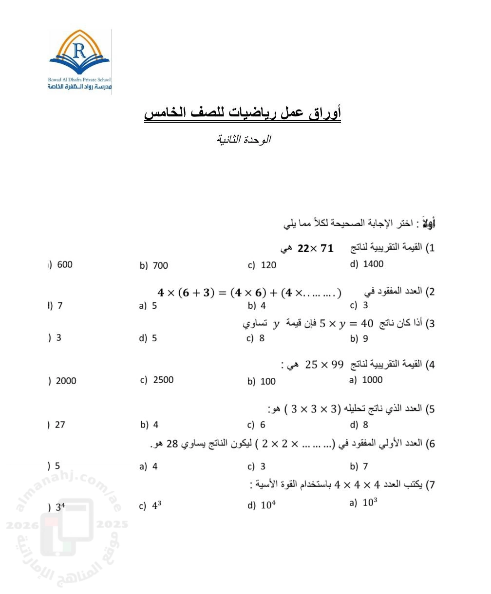 | أنت هنا: موقع المناهج ⇦ المناهج الإماراتية ⇦ الصف الخامس ⇦ رياضيات ⇦ الفصل الأول ⇦ أوراق عمل |