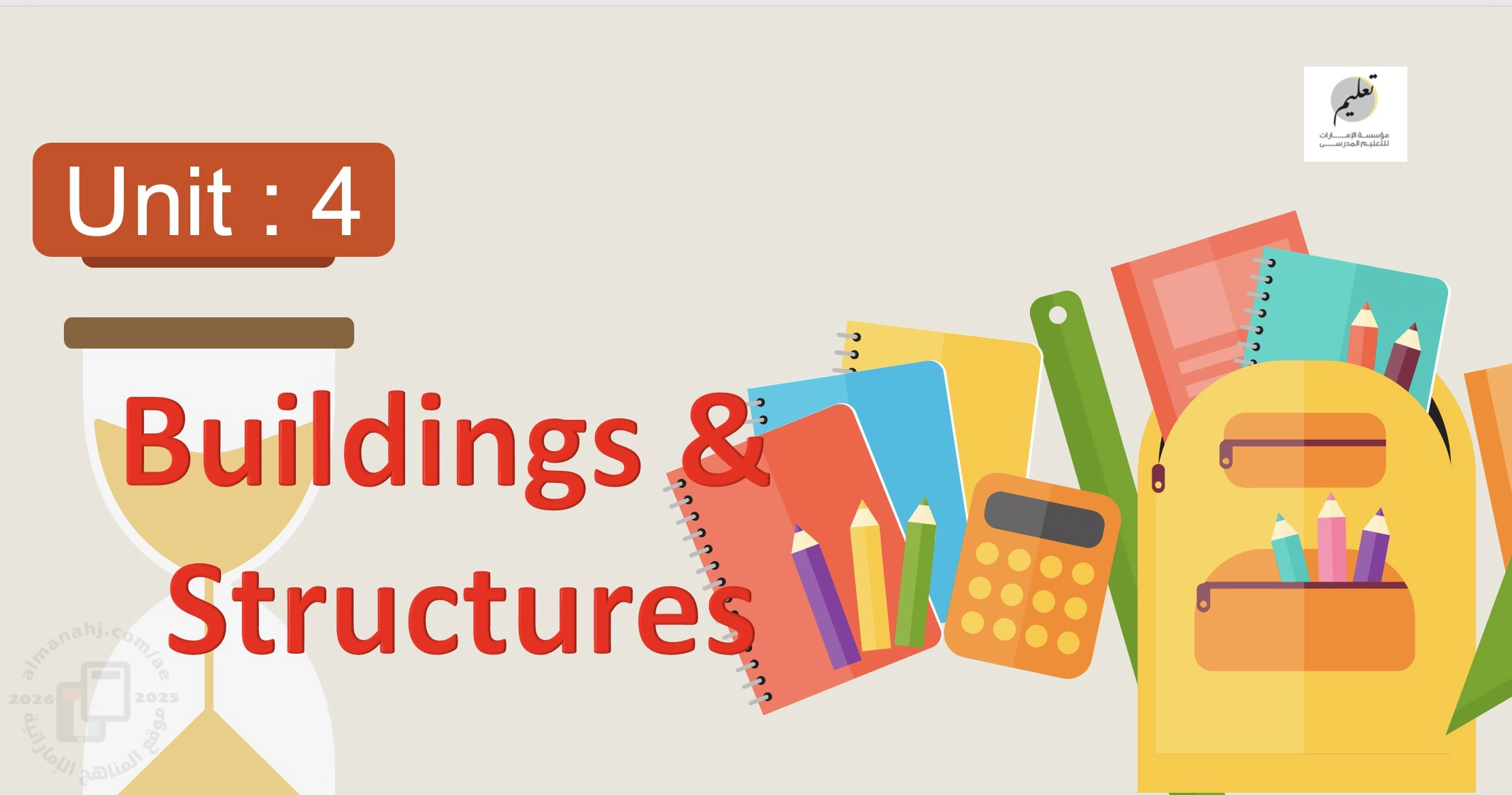 عرض بوربوينت الدرس الرابع من الوحدة الرابعة Buildings and structures | |||