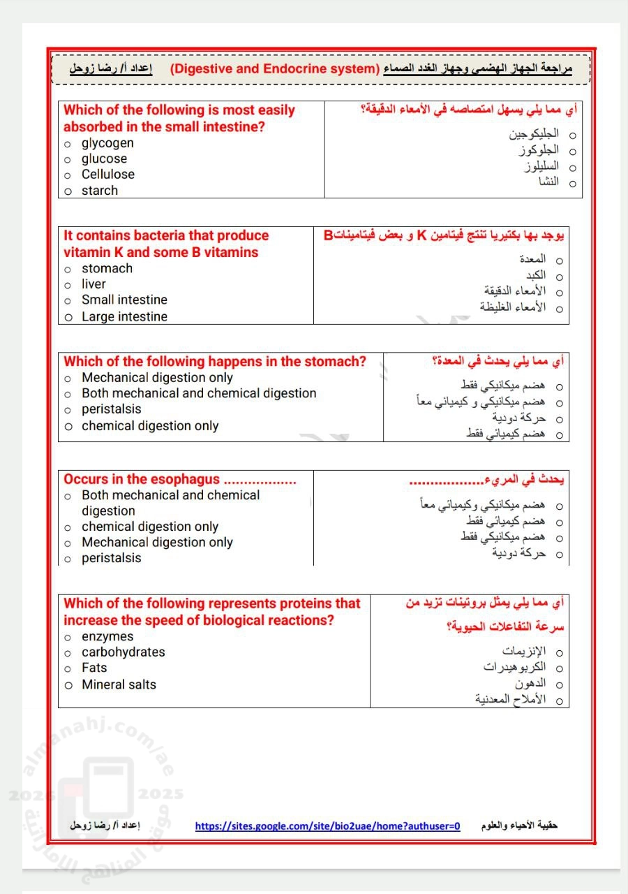 معلومات الملف: مراجعة الجهاز الهضمي و الغدد الصماء باللغتين العربية و الانجليزية