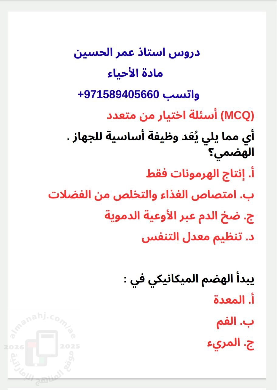 أسئلة اختبار تجريبي درس الجهاز الهضمي - إعداد: عمر الحسين | ||