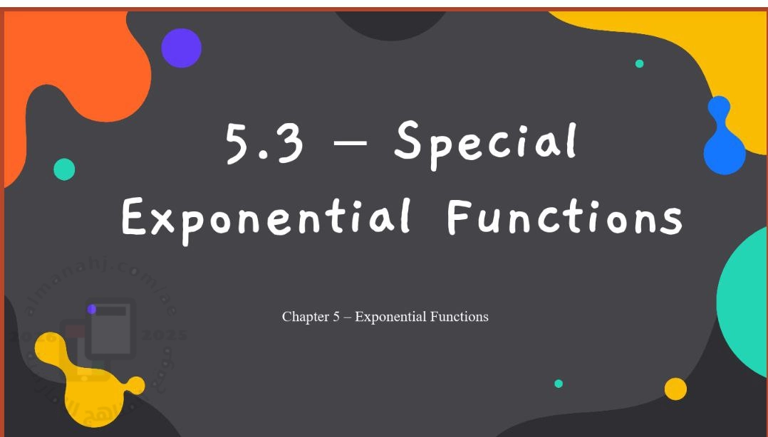 1. رياضيات, الفصل الأول, 2025-2026, عرض بوربوينت الدرس الثالث Special Exponential Function من الوحدة الخامسة منهج ريفيل