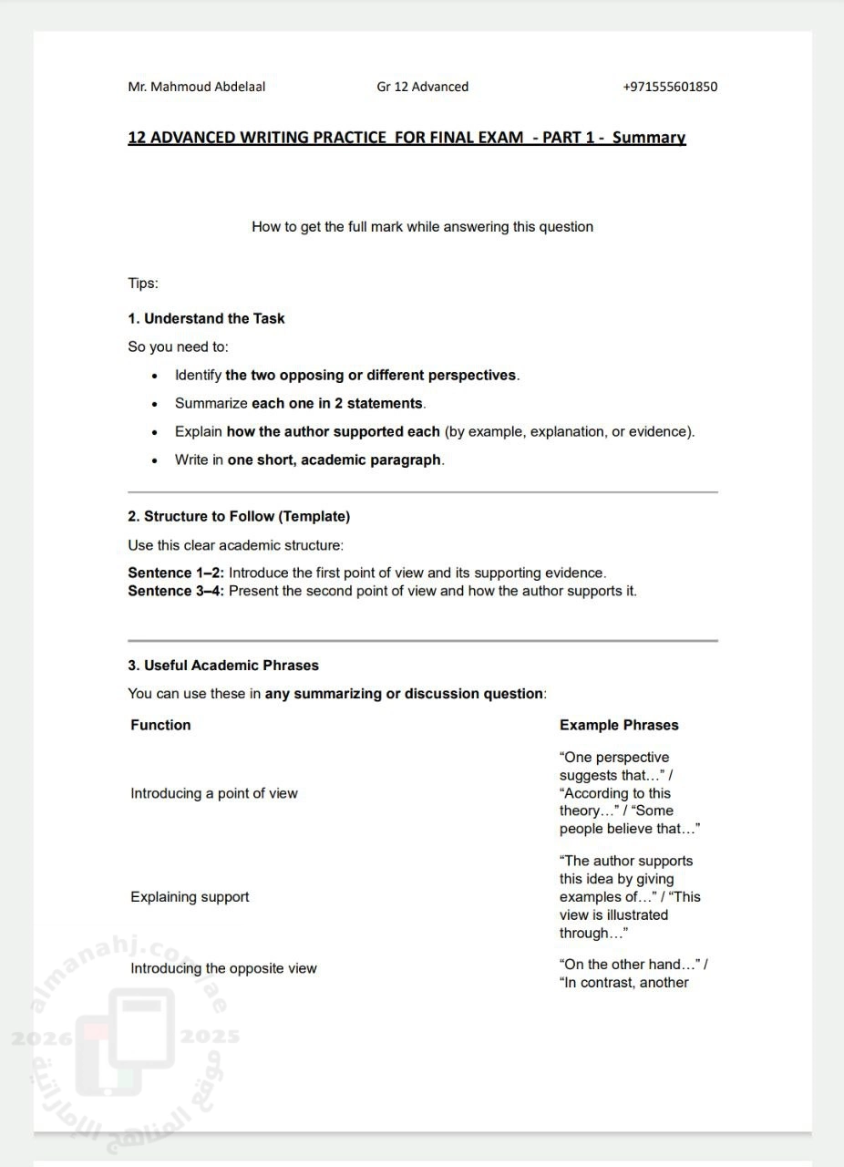 معلومات الملف: اختبار Writing practice المسار المتقدم | ||