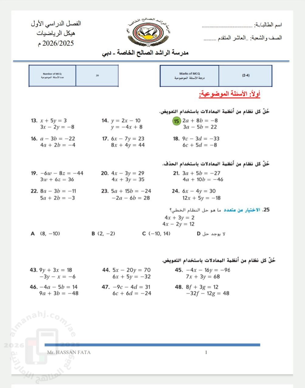 أهلاً بكم جميعاً طلاباً ومدرسين وأهالي طلبة ومهتمين، في قسم دولة الإمارات ، نحن الآن في الفصل الأول من العام الدراسي 2025/2026 وتاريخ اليوم 2025/10/21 م | |