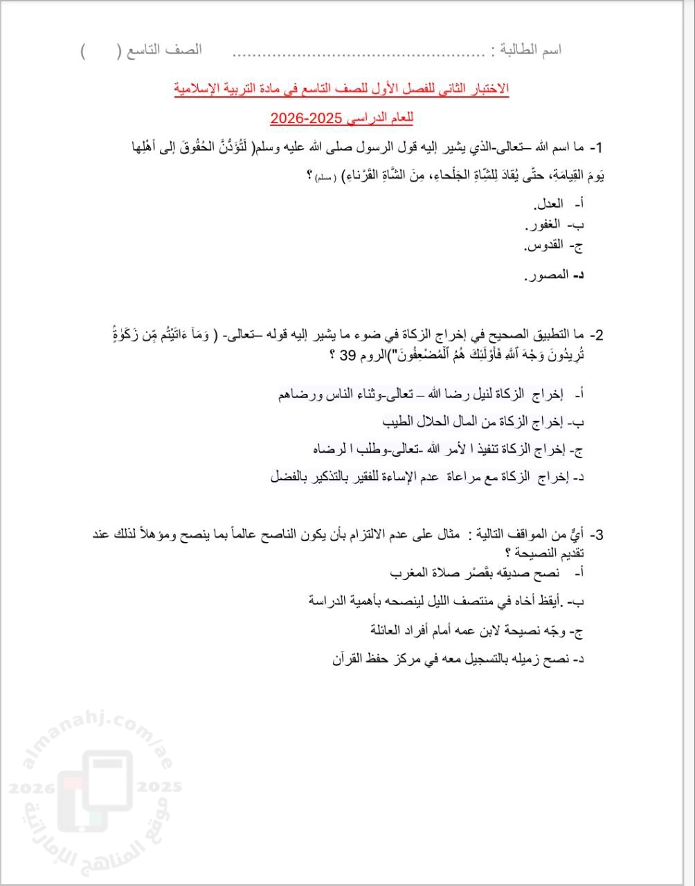 أنت هنا: موقع المناهج ⇦ المناهج الإماراتية ⇦ الصف التاسع ⇦ تربية اسلامية ⇦ الفصل الأول ⇦ اختبارات |