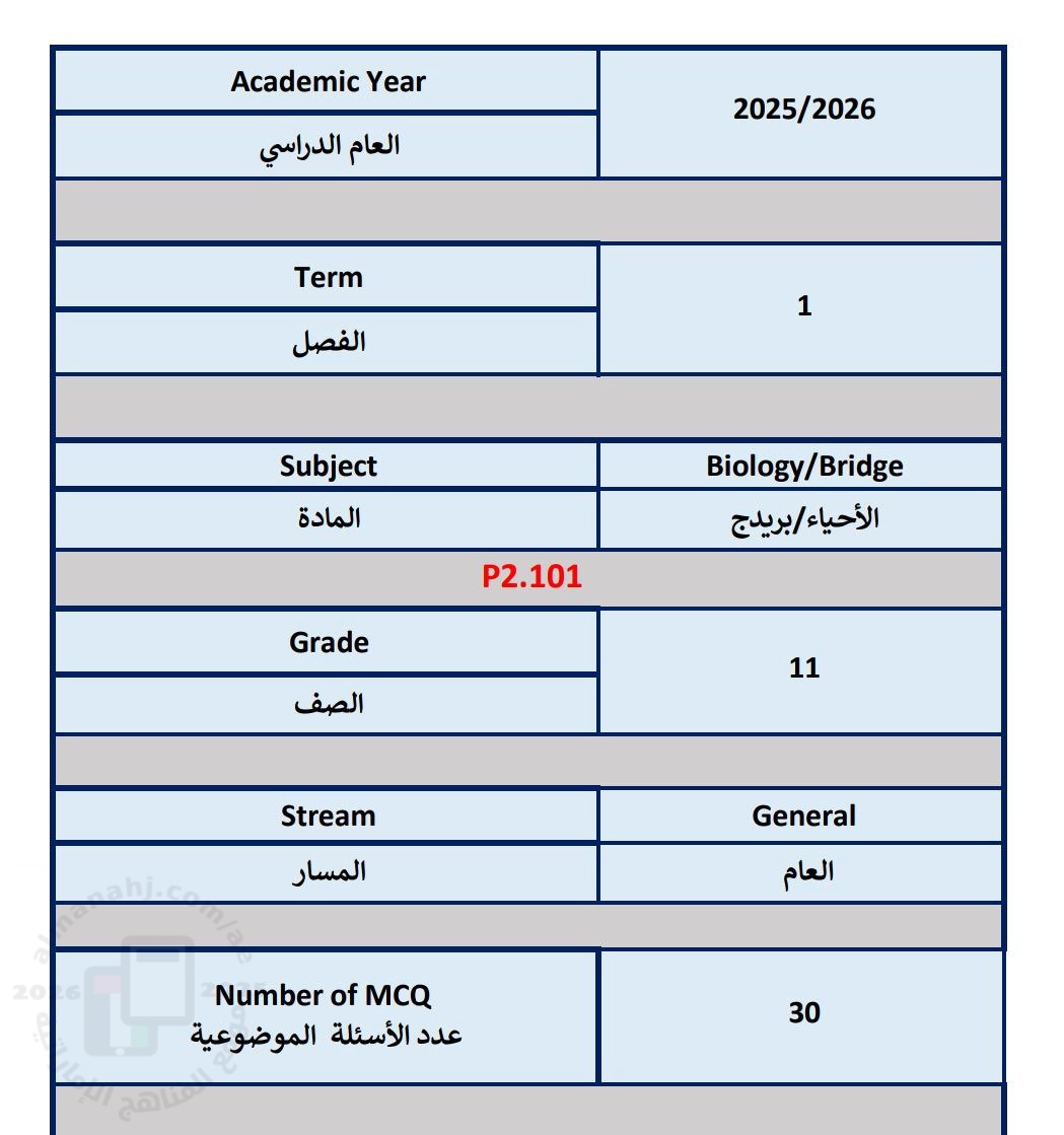 الهيكل الوزاري الجديد منهج بريدج المسار P2 للعام 2025 | ||