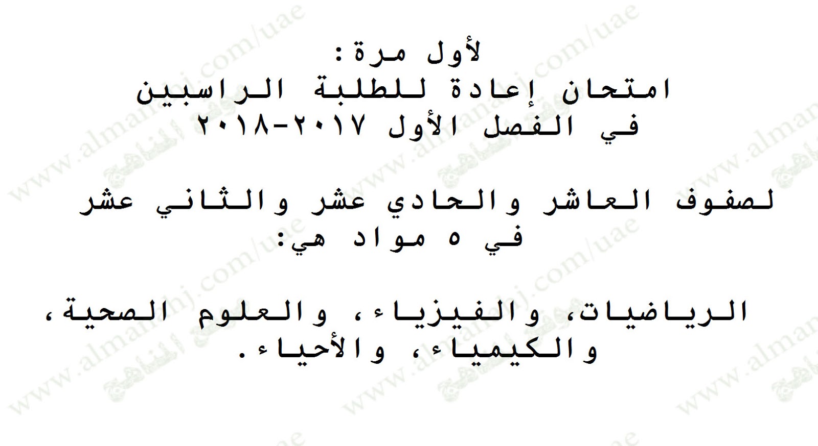 معلومات الملف: لأول مرة: امتحان إعادة للطلبة الراسبين في الفصل الأول 2017-2018 | ||