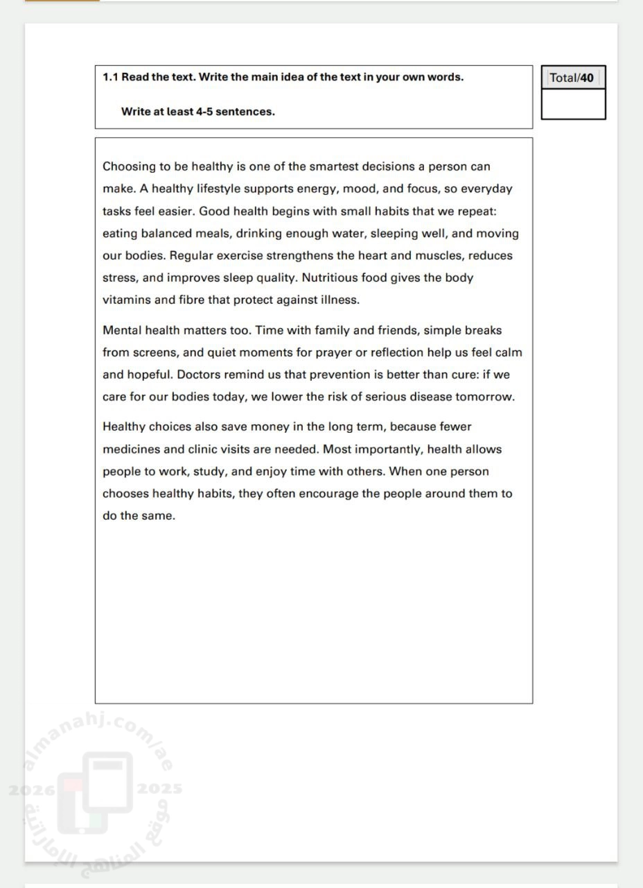 معلومات الملف: يحتوي هذا الملف على نموذج مهمة كتابة لطلاب الصف العاشر المتقدم والحادي عشر العام في الإمارات، ويتلخص فيما يلي: | ||