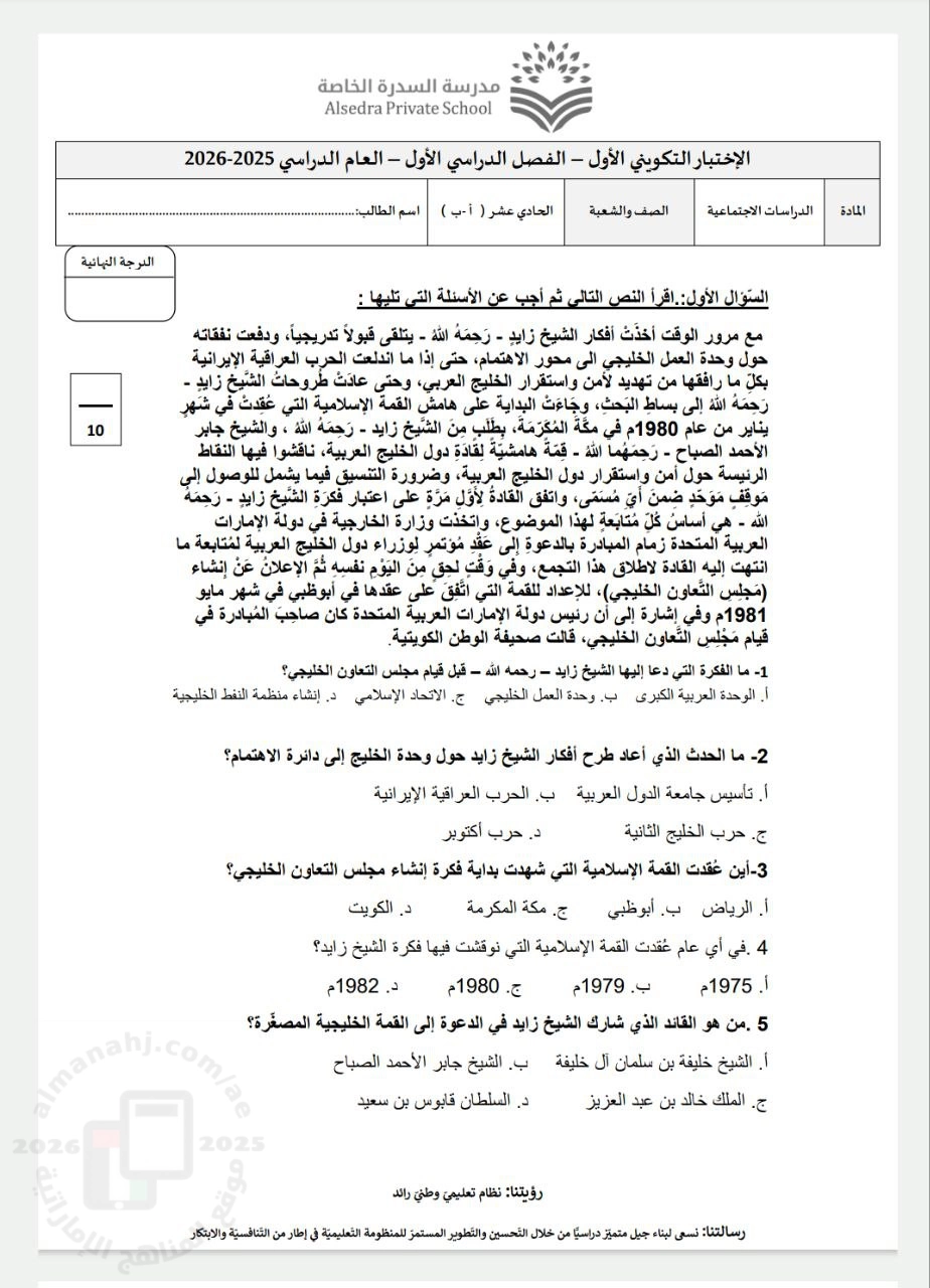 أهلاً بكم جميعاً طلاباً ومدرسين وأهالي طلبة ومهتمين، في قسم دولة الإمارات ، نحن الآن في الفصل الأول من العام الدراسي 2025/2026 وتاريخ اليوم 2025/10/23 م | |