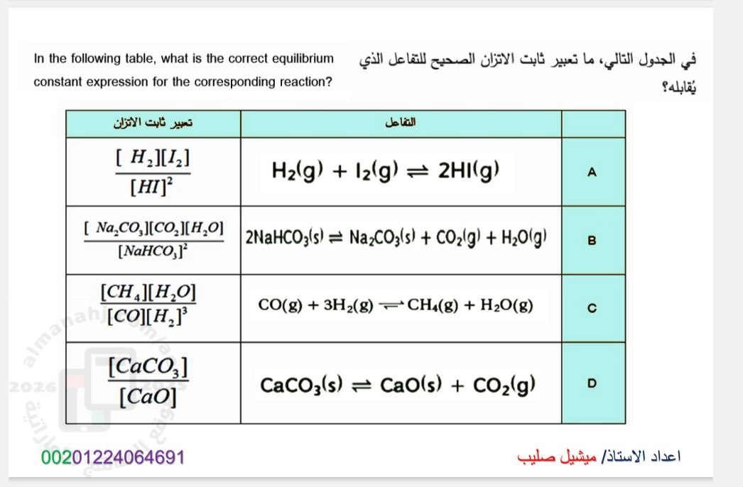 مجموعة أسئلة متميزة من الامتحانات الوزارية خاصة بالوحدة الثالثة الإتزان الكيميائي - إعداد: ميشيل صليب | ||