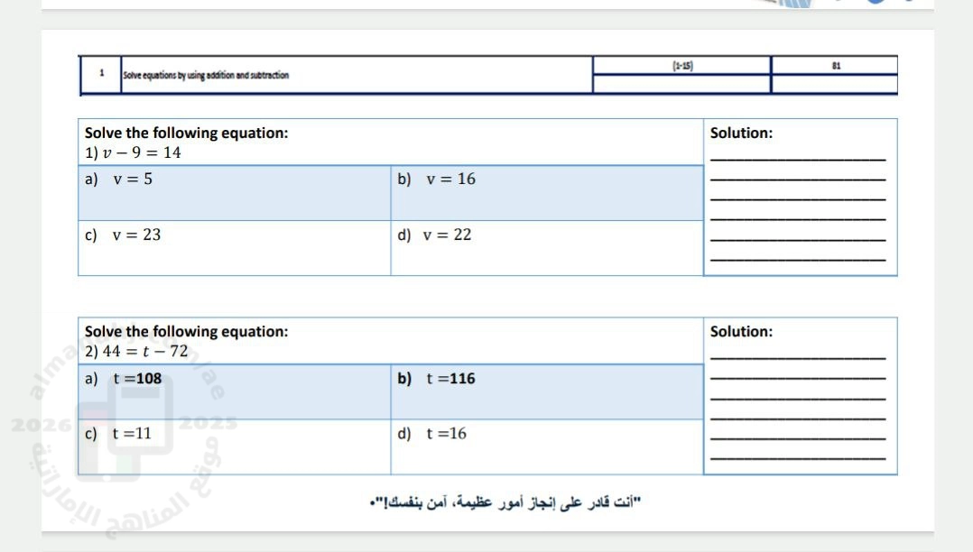 8. رياضيات, الفصل الأول, 2025-2026, تجميعة أسئلة وفق الهيكل الوزاري الجديد منهج ريفيل