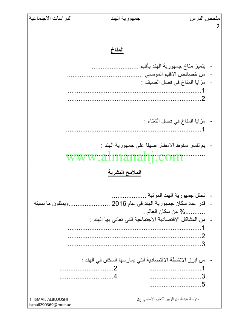 معلومات الملف: الصف السادس, الفصل الثاني, اجتماعيات, 2017-2018, جمهورية الهند الموقع الجغرافي | |||