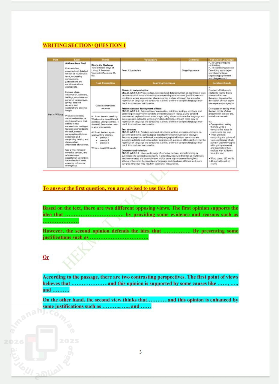 معلومات الملف: ملزمة شاملة وفق الهيكل الوزاري المسار المتقدم يحتوي هذا الملخص على جميع مهارات الاختبار النهائي الشامل : شرح كتابة الرأي مع أمثلة شرح عمل خطة مقال مع أمثلة شرح كيفية كتابة مقال مع أمثلة شرح حل سؤال المهارات العليا مع مثال شرح القواعد المطلوبة مع تمارين الكلمات المفتاحية لفهم القراءة 10 قطع تدريبية ( 80 سؤال ) الحلول | ||