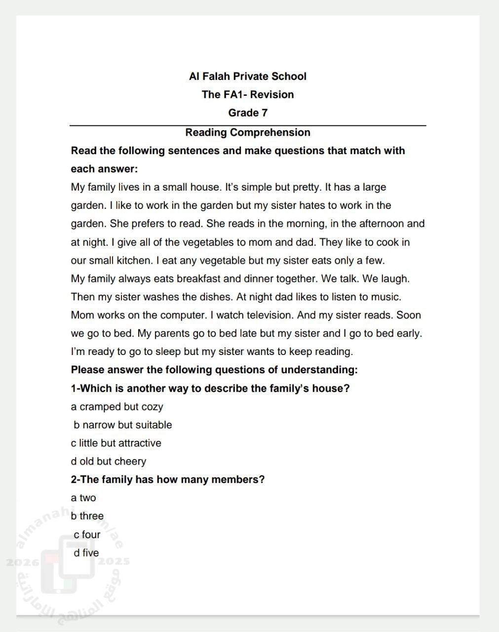 تم إيجاد الملف: مراجعة Reading comprehension and maze فهم قرائي واختبار