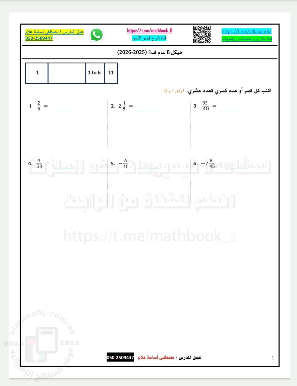 | أنت هنا: موقع المناهج ⇦ المناهج الإماراتية ⇦ الصف الثامن ⇦ رياضيات ⇦ الفصل الأول ⇦ ملفات متنوعة |
