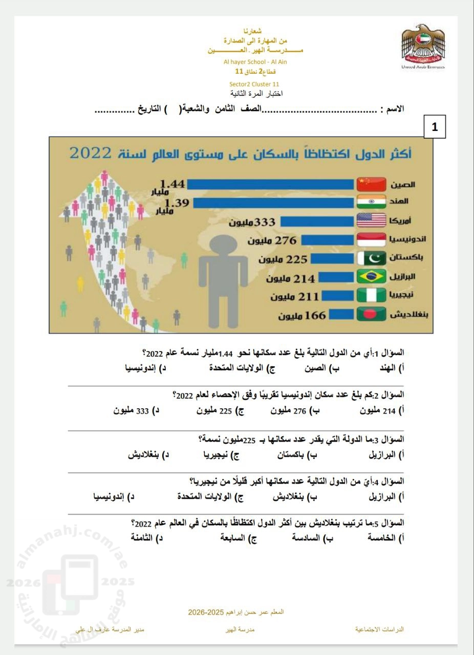 | أهلاً بكم جميعاً طلاباً ومدرسين وأهالي طلبة ومهتمين، في قسم دولة الإمارات ، نحن الآن في الفصل الأول من العام الدراسي 2025/2026 وتاريخ اليوم 2025/10/25 م | |