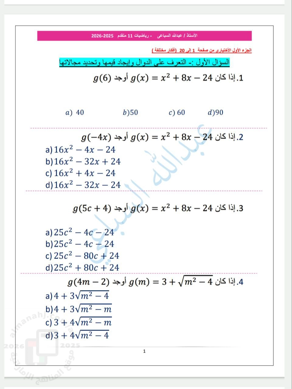 | السابق: تجميعة أسئلة وحدة الدوال الأسية واللوغاريتمية وفق الهيكل الوزاري الجديد منهج بريدج | الملف الحالي: 36372 | أنت تتصفح الملف الأخير في الصف الحادي عشر المتقدم |