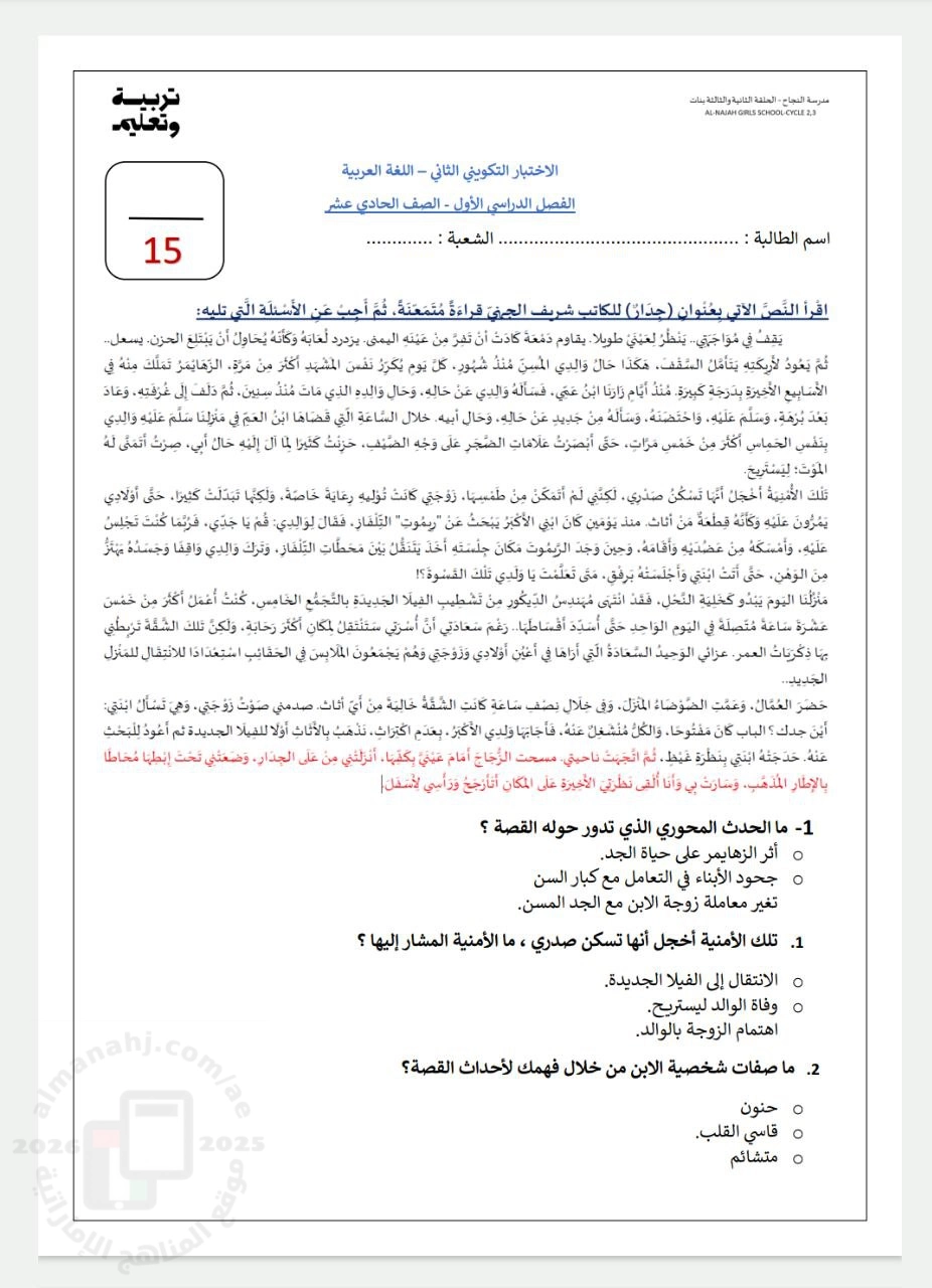 | أنت هنا: موقع المناهج ⇦ المناهج الإماراتية ⇦ الصف الحادي عشر ⇦ لغة عربية ⇦ الفصل الأول ⇦ اختبارات |