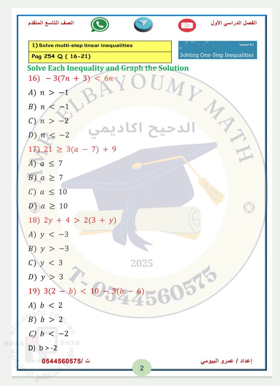3. الصف التاسع المتقدم, رياضيات, تجميعة شاملة كامل مخرجات الهيكل الوزاري الجديد منهج ريفيل