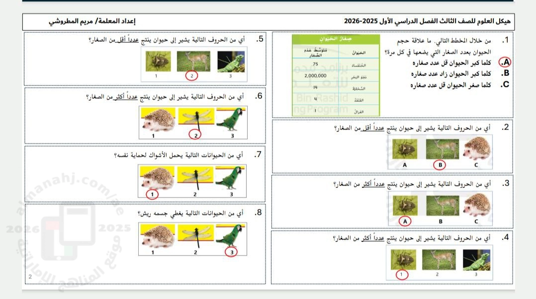 نموذج الأسئلة من الرابط التالي : https://almanahj.com/ae/id=36393 | ||