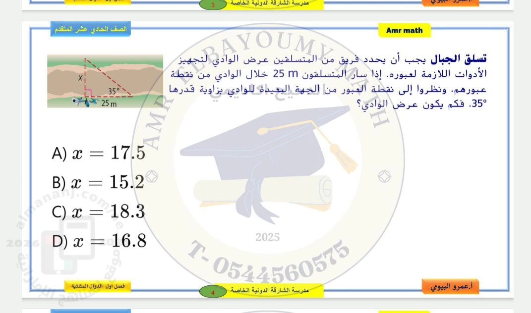 | مراجعة وحدة الدوال المثلثية وفق الهيكل الوزاري الجديد منهج بريدج - إعداد: عمرو البيومي | |||