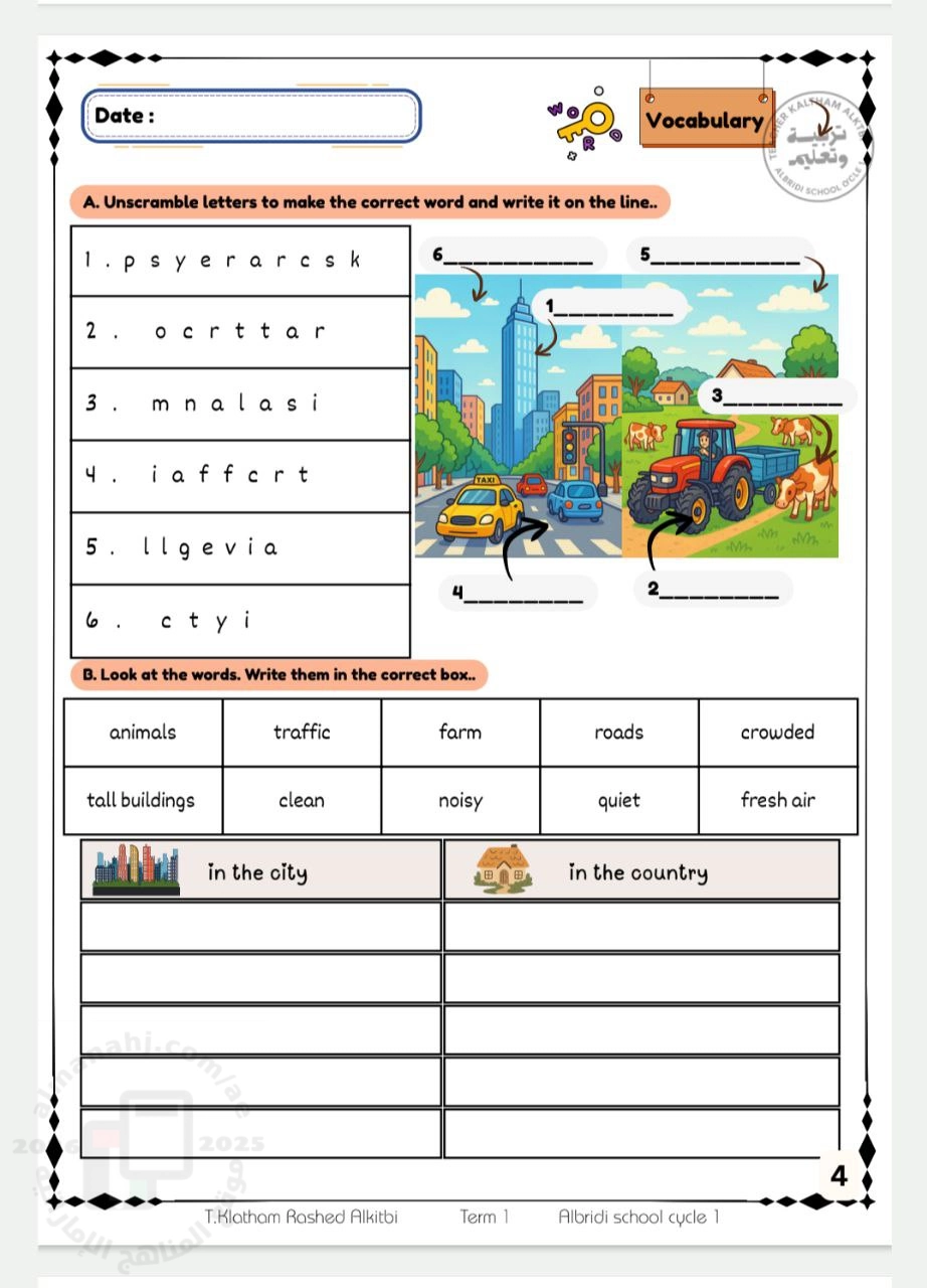 | أوراق عمل الأسبوع الثامن City life , Country side منهج أكسس بدون الحل - إعداد: Kaltham Rashed Alkitbi | |||