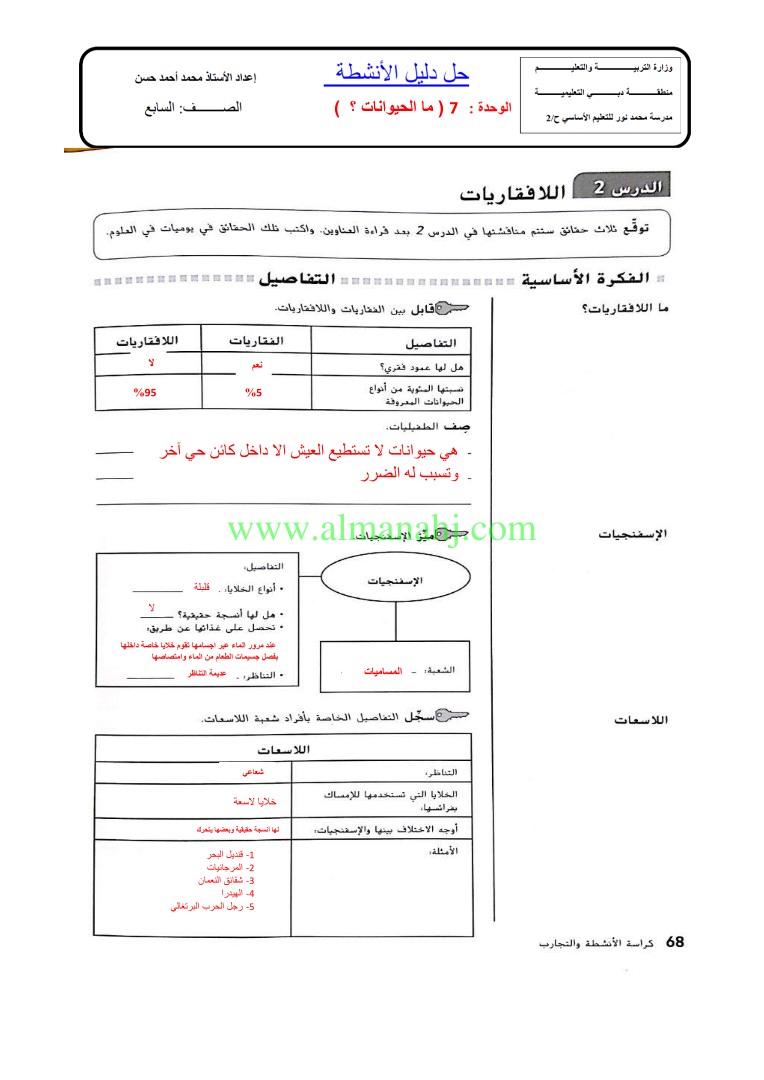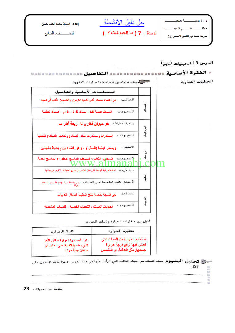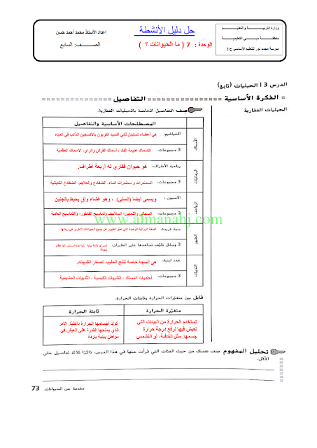 دليل حل الانشطة الوحدة 7 ماالحيوانات | |||
