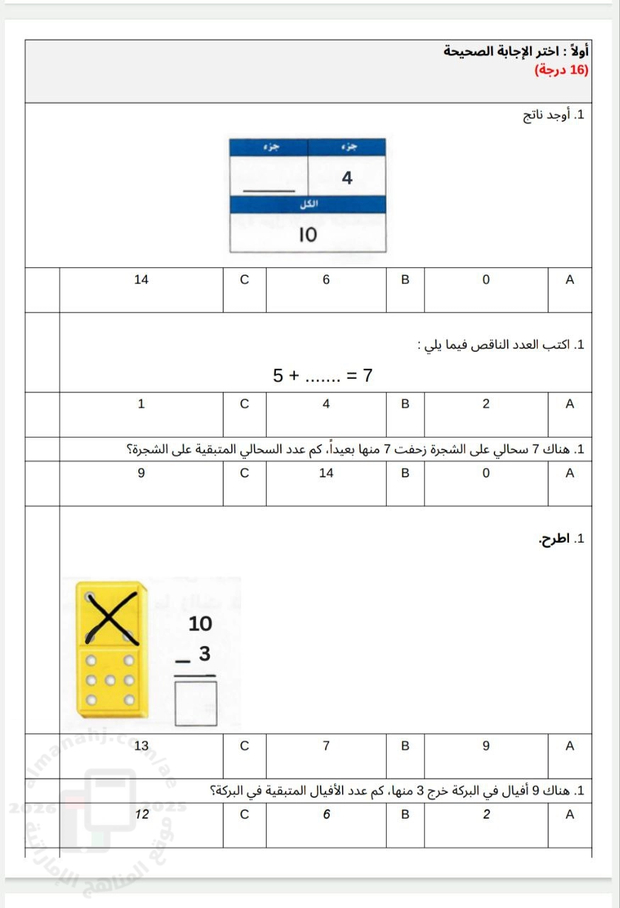 | أنت هنا: موقع المناهج ⇦ المناهج الإماراتية ⇦ الصف الأول ⇦ رياضيات ⇦ الفصل الأول ⇦ اختبارات |