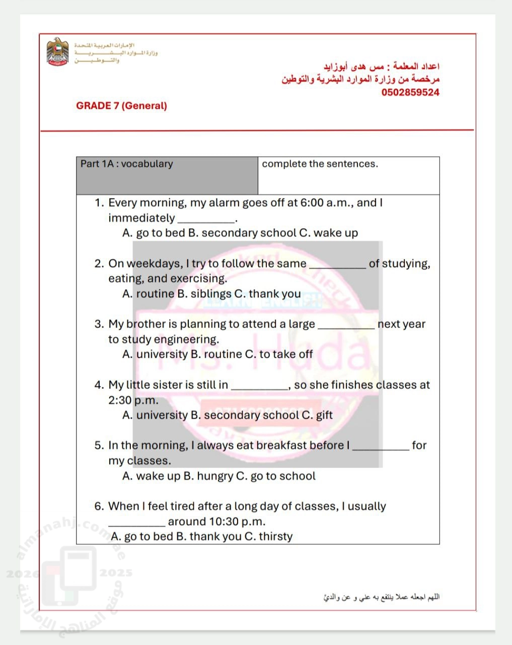 | تنويه: المناهج الإماراتية هو موقع مجاني وغير رسمي ولا يتطلب اشتراك لتحميل الملفات، لذلك يرجى عدم دفع أي مبلغ أو الاشتراك من أجل تحميل الملفات. | |