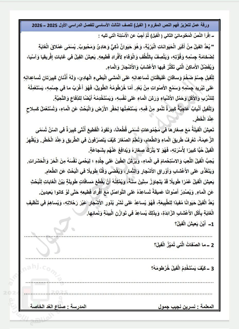 معلومات الملف: ورقة عمل لتعزيز فهم النص المقروء النص المعلوماتي بدون الحل