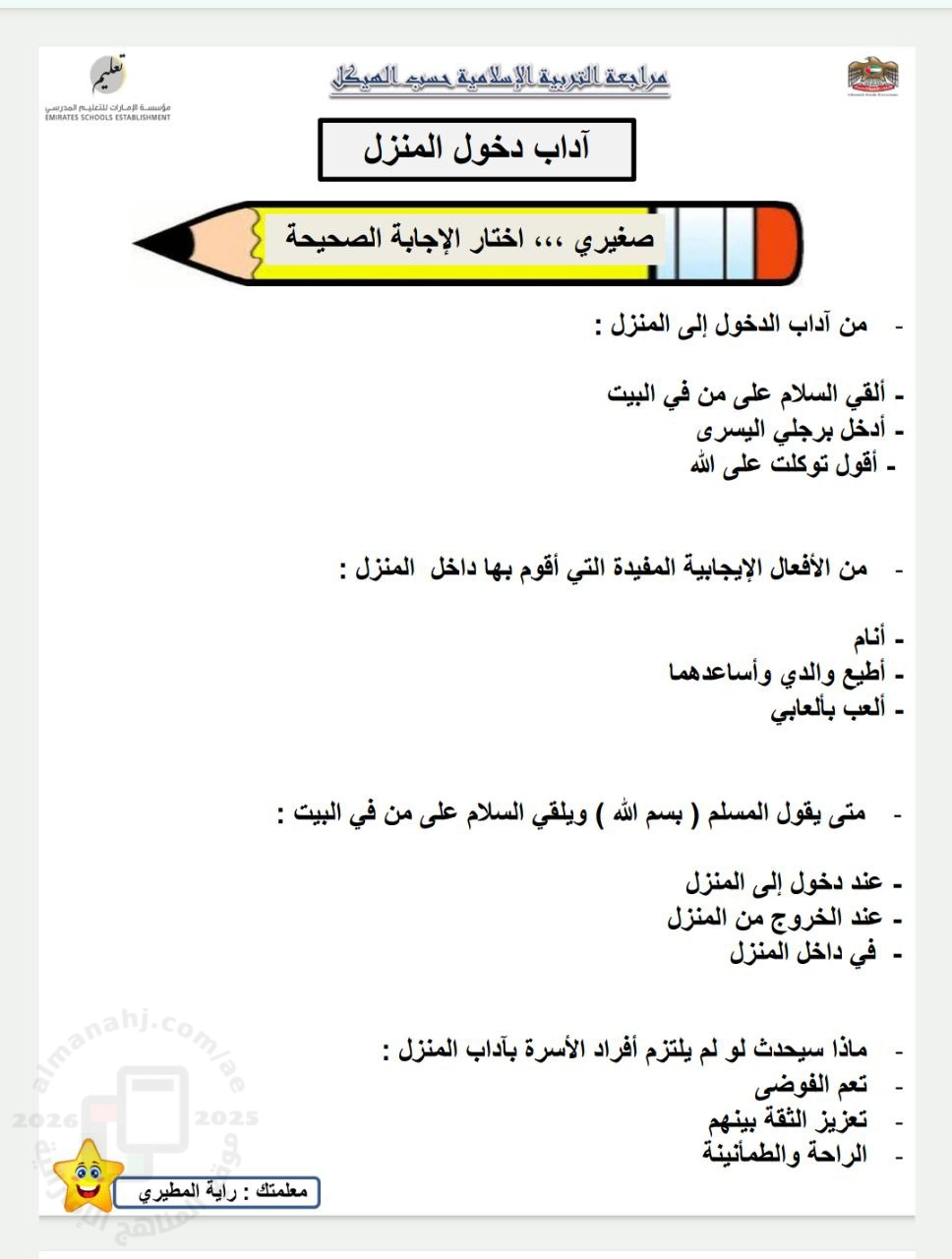 | تنويه: المناهج الإماراتية هو موقع مجاني وغير رسمي ولا يتطلب اشتراك لتحميل الملفات، لذلك يرجى عدم دفع أي مبلغ أو الاشتراك من أجل تحميل الملفات. | |