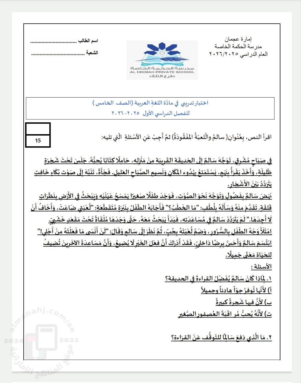 | أهلاً بكم جميعاً طلاباً ومدرسين وأهالي طلبة ومهتمين، في قسم دولة الإمارات ، نحن الآن في الفصل الأول من العام الدراسي 2025/2026 وتاريخ اليوم 2025/11/02 م | |