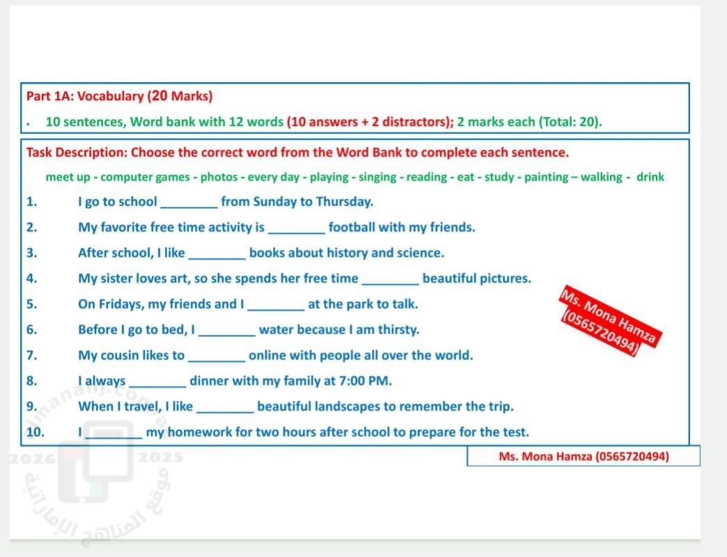 | نموذج اختبار وفق الهيكل الوزاري الجديد - إعداد: Mona Hamza | ||