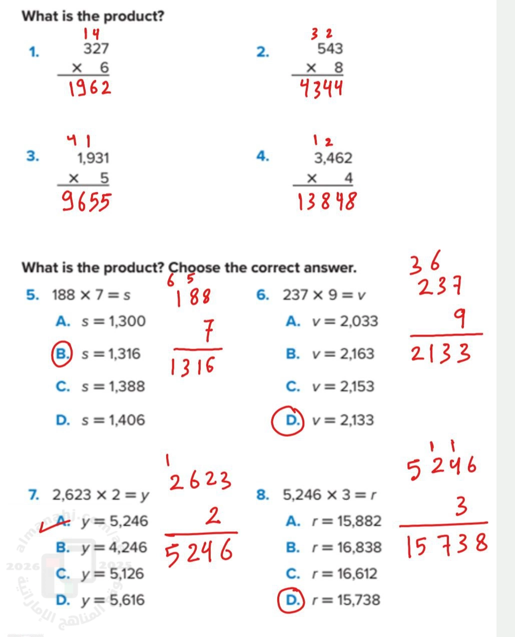 2. رياضيات, الفصل الأول, 2025-2026, حل تدريبات الدرس السادس من الوحدة الخامسة منهج ريفيل
