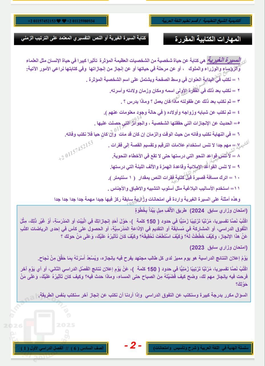 | موضوعات الكتابة من امتحانات وزارية سابقة للفصول الثلاثة - إعداد: أكاديمية الشيخ التعليمية | ||