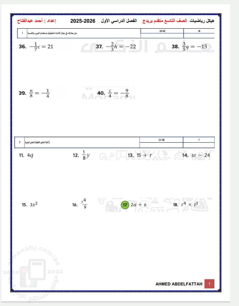 | أنت هنا: موقع المناهج ⇦ المناهج الإماراتية ⇦ الصف التاسع المتقدم ⇦ رياضيات ⇦ الفصل الأول ⇦ ملفات متنوعة |