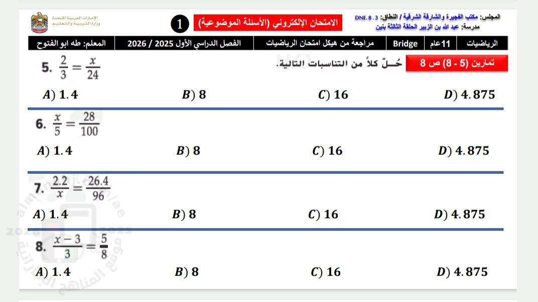 | أهلاً بكم جميعاً طلاباً ومدرسين وأهالي طلبة ومهتمين، في قسم دولة الإمارات ، نحن الآن في الفصل الأول من العام الدراسي 2025/2026 وتاريخ اليوم 2025/11/05 م | |