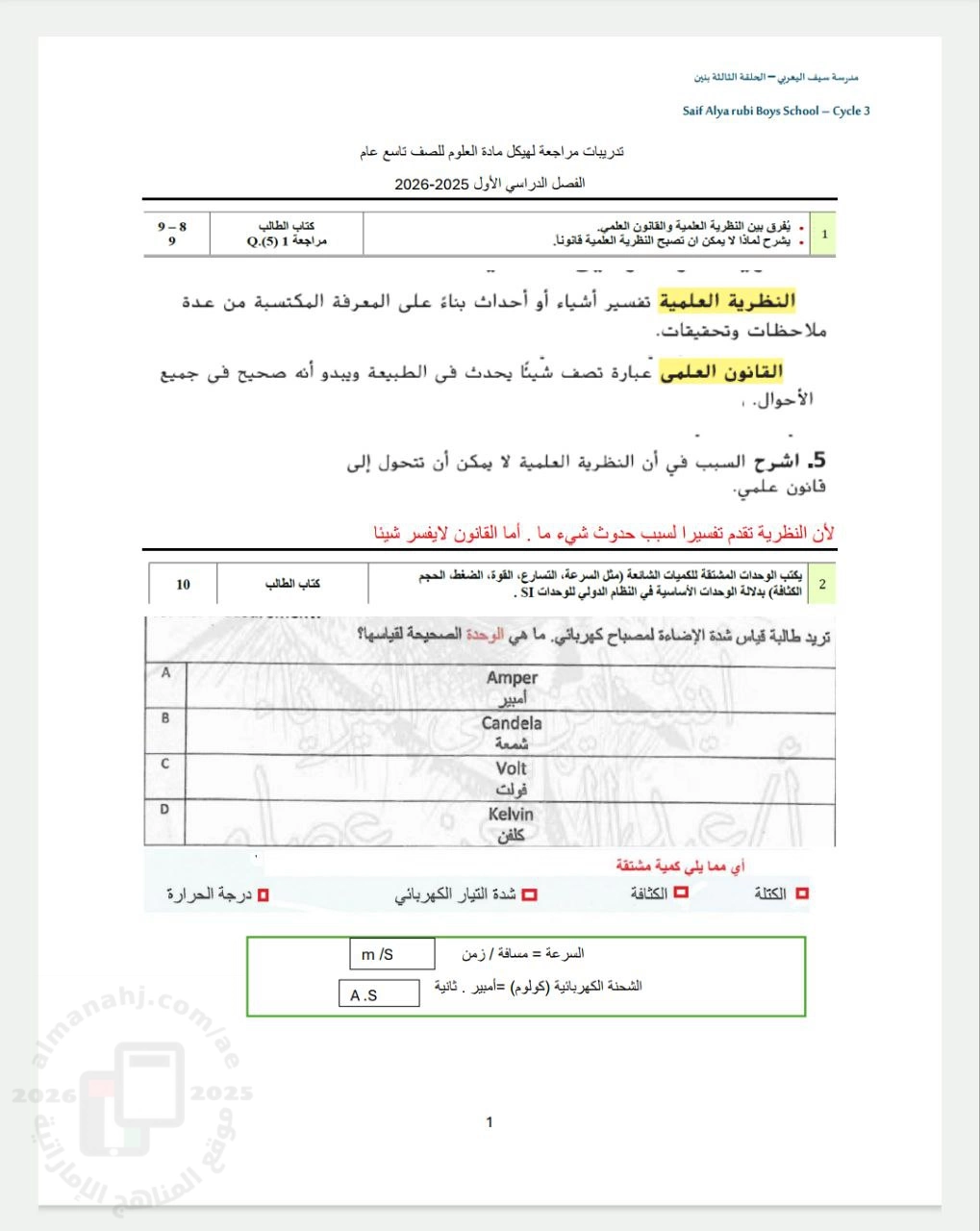 يتم الآن تحضير الملف (تدريبات مراجعة وفق الهيكل الوزاري الجديد منهج بريدج) من أجل التحميل